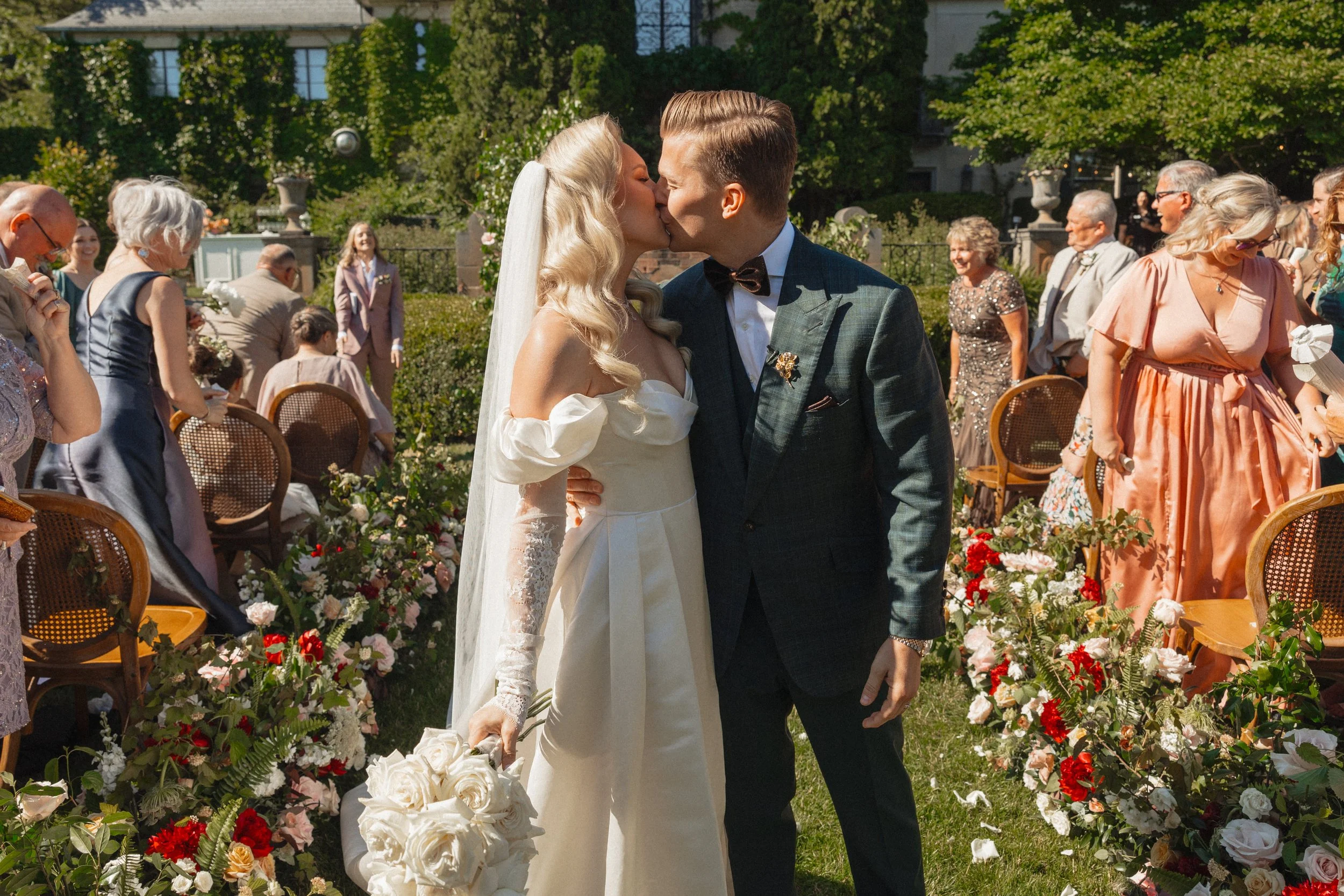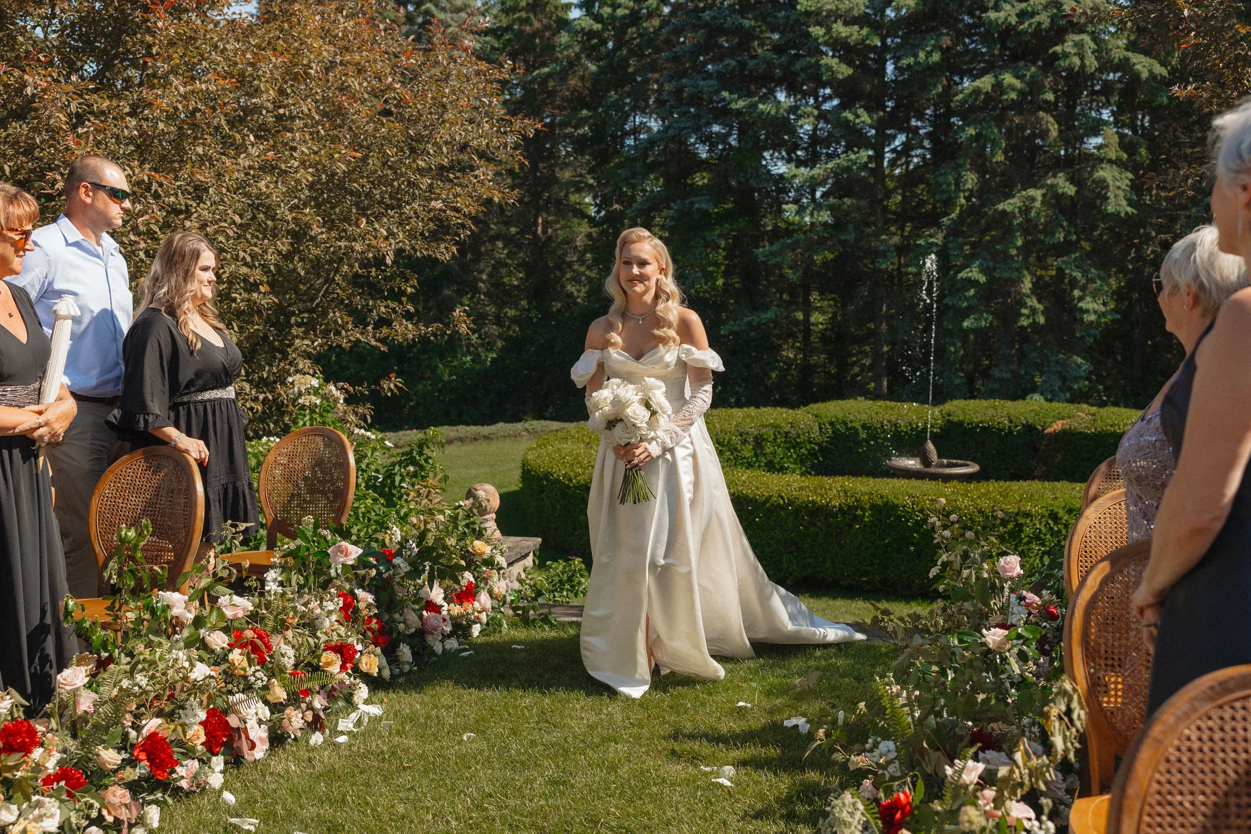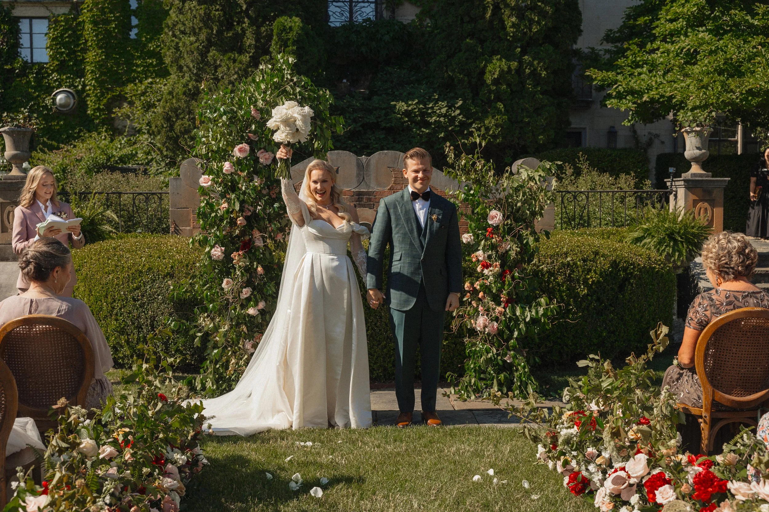 Experience the magic of a Bridgerton-inspired wedding in southwest Michigan! Megan and Troy's recent celebration brought the popular series to life with lush floral arrangements, vintage china patterns, and elegant Victorian-era details. The bride's heartwarming first look with her family added a special touch before she met her dapper groom. From rich flourishes to period-perfect decor, every aspect of this wedding transported guests to a bygone era of romance and elegance.